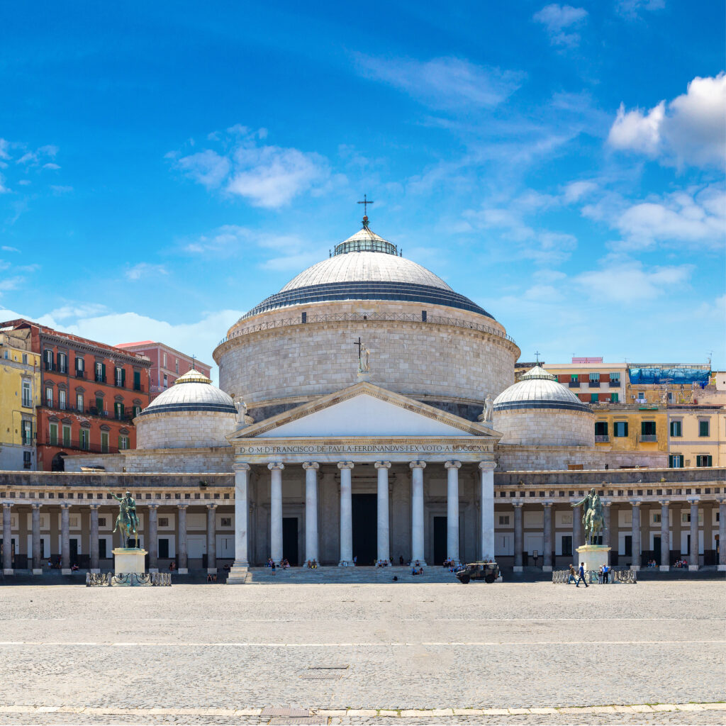 הכיכר המרכזית והמרשימה של נאפולי, מוקפת בארמון המלכותי ובכנסיית סן פרנצ'סקו די פאולה המרשימה. מקום מושלם לטיול רגוע ולתמונות מרהיבות.